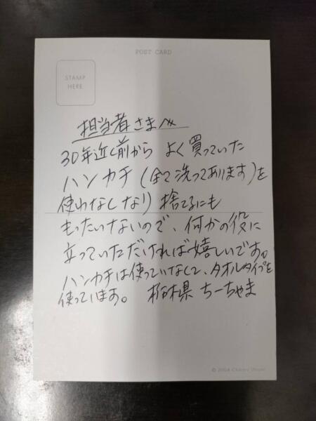 ハンカチや靴、衣類、バッグ等をご寄付いただきました!